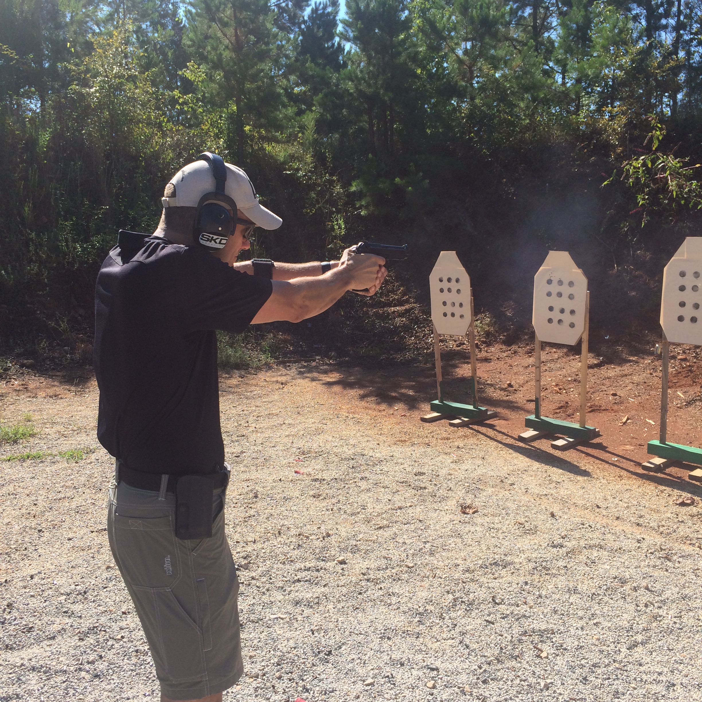 We began the day shooting an exercise on paper targets, and after each string, Frank would ask us questions about what we saw during the string, and he would then offer teaching points.  We also worked on properly gripping the pistol as well as recoil control.