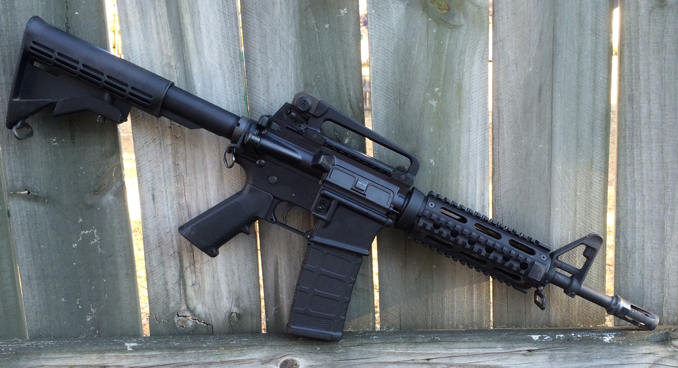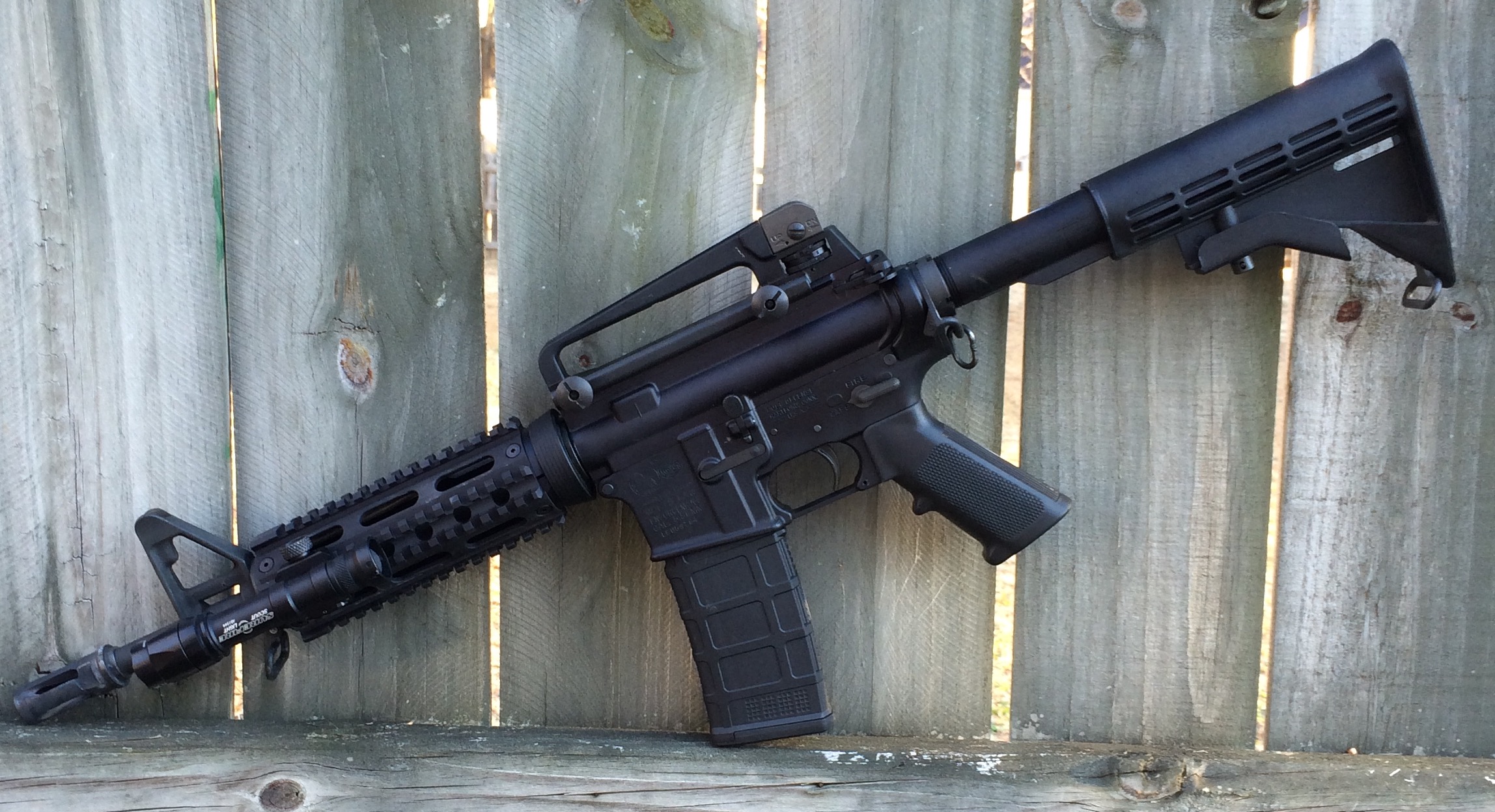 I shot my issued shorty Colt M4LE carbine.  It is equipped with a YHM-9670 handguard.  I received and installed the handguard earlier this week.  I recently met the owners of YHM thanks to my friends at Sight Picture Media.  I like the feel and profile of the product and think it is a good addition to my carbine.   My lights were provided by Jamie Wiedeman of Surefire.  On my rifle was an older Surefire Scout light, and for my handheld, I tried two different versions of the Surefire Peacekeeper (dual output and the tactical).  I’ve been running the Scout light for several years, and it has been on more than one bad guy hunt.  This was the maiden voyage for the Peacekeeper lights.  I preferred the dual output light due to the “click on, click off” tail cap switch.  With the tactical version, my thumb came off the switch a couple of times during recoil; thus, the light turned off.  The tail caps can be switched, and I will play around with the clickable switch on the tactical version.  Thanks to Jamie for setting me up with the lights.  It was “almost like cheating.”