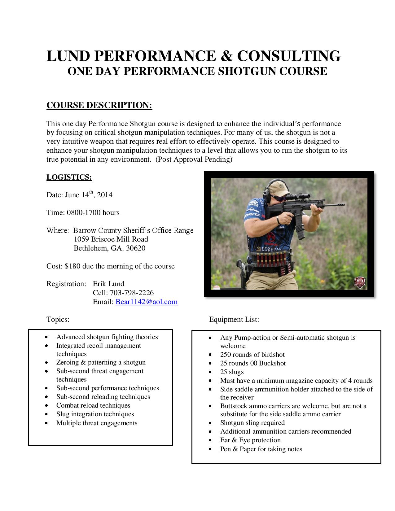 Having previously taken a rifle class from Erik Lund, I welcomed the opportunity to take his Performance Shotgun course. Erik was assisted in this class by Tod Lit.